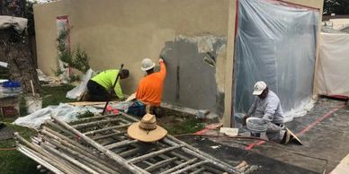 Our stucco services include both repairs and full re-stucco applications. For repairs, we address cracks, water damage, and delamination by removing compromised areas, applying proper base coats, and matching textures. For full re-stucco, we strip old layers, install weather barriers if needed, and apply new stucco systems to restore durability and appearance.